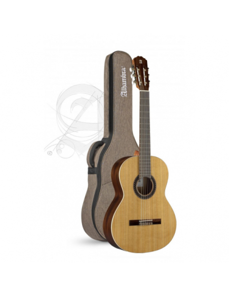 La caratteristica principale di questo modello è la sua finitura, una combinazione di lucentezza e poro aperto che non si è mai vista in nessun altro modello di chitarra Alhambra. Come tutti i modelli Alhambra, è lavorata artigianalmente e realizzata con legni selezionati. Il cedro massello è stato utilizzato per la parte superiore ed il sapele per i fianchi e il retro.