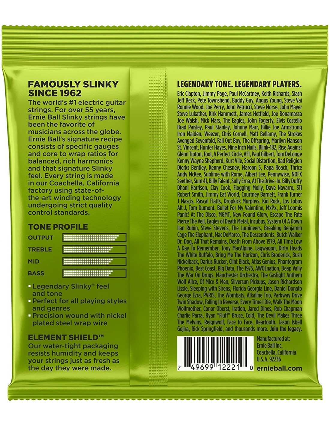 Le corde avvolte Regular Slinky vengono costruite con un filo in acciaio nichelato, avvolto attorno ad un'anima esagonale in acciaio. Le corde lisce sono costruite in acciaio temprato ad elevato contenuto di carbonio placcate allo stagno, e producono un suono ben bilanciato per la vostra chitarra.Caratteristiche principali |