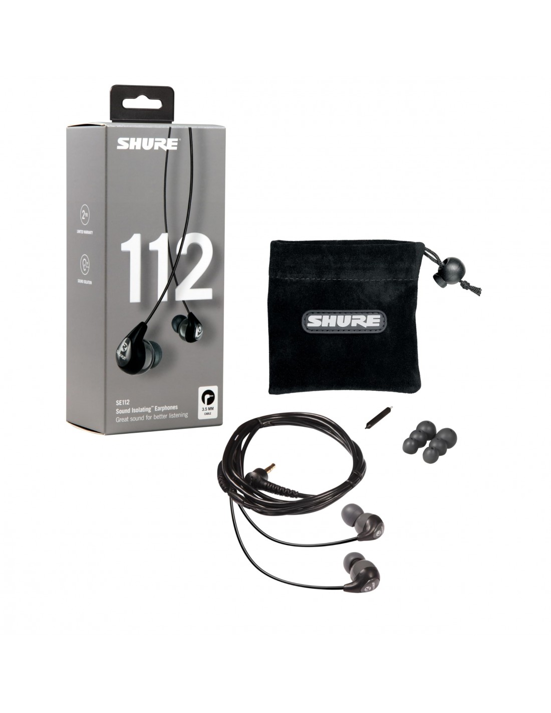 Shure SE112 sono cuffie in-ear con isolamento acustico e un singolo driver dinamico, apprezzate per la loro qualità audio e la durata