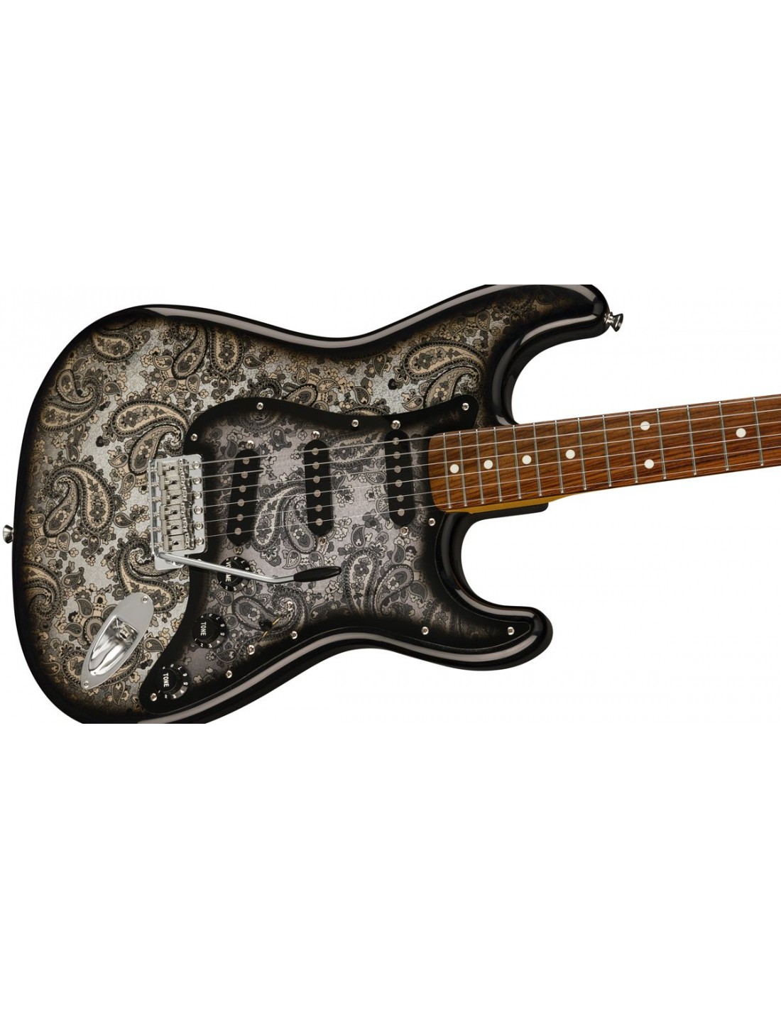 The Fender Made in Japan Limited Edition Stratocaster RW Black Paisley exudes the authentic vibes of the wild sixties thanks to its playful paisley finish. While three Fender USA Vintage Stratocaster single coils and the traditional passive circuitry deliver the versatile and desired Strat sound for pop, funk, blues and rock.