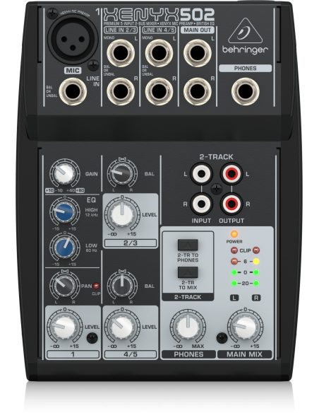 Sufficientemente compatto da essere alloggiato in piccoli spazi, questo mixer mic/line a 2 bus con design ULN a bassissimo rumore offre tutto ciò che occorre per un mixaggio professionale in applicazioni eterogenee. Provvisto di mic preamp XENYX all'avanguardia e di un EQ "British", conferisce alle registrazioni un suono professionale.