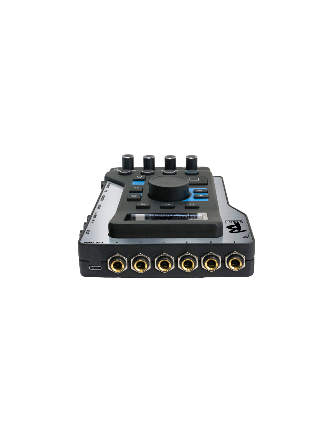 B.Beat è la soluzione ideale per gestire le sequenze sul palco: lo colleghi al mixer, indossi la tua cuffia, premi play e via. Con B. Beat controlli il volume del Click e delle varie fonti sonore. Legge MP3, Wav, Stems, MTA e progetti audio fino a 16 tracce mono oppure 8 tracce stereo. Legge Video o JPG sincronizzati con la musica. Ha un mixer digitale con 6 uscite separate per le tracce. Ha due ingressi per ricevere, ad esempio, un ritorno dal mixer e con 4 potenziometri il musicista bilancia autonomamente gli ascolti in cuffia.