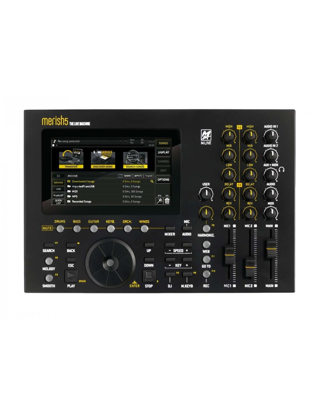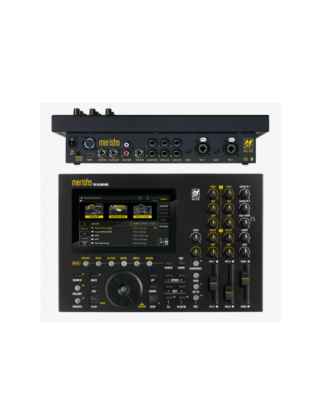 Una sola macchina per suonare e cantare in modo professionale. Il dispositivo stand alone dedicato alla lettura, archiviazione e riproduzione di Basi Musicali digitali che racchiude tutte le funzionalità del Merish 5 con una velocità raddoppiata e la possibilità di editare i file audio a tracce separate con gli MTA files (formato realizzato da M-live). Legge e suona i file con estensione .wav / .aac / .ogg / .flac / .aif / .au, inoltre con il Plug In Prompter in dotazione che permette di connettersi sul palco a device come tablet o smartphone per visualizzare in remoto su più postazioni testi e accordi delle canzoni in esecuzione.