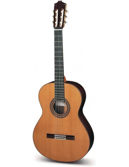 Chitarra classica con tavola armonica in abete tedesco o cedro massello e cassa in palissandro indiano prodotta con metodo artigianale interamente in Spagna con legno altamente selezionato. Garanzia ufficiale 3 anni del produttore MANUFACTURAS DE ALHAMBRA.