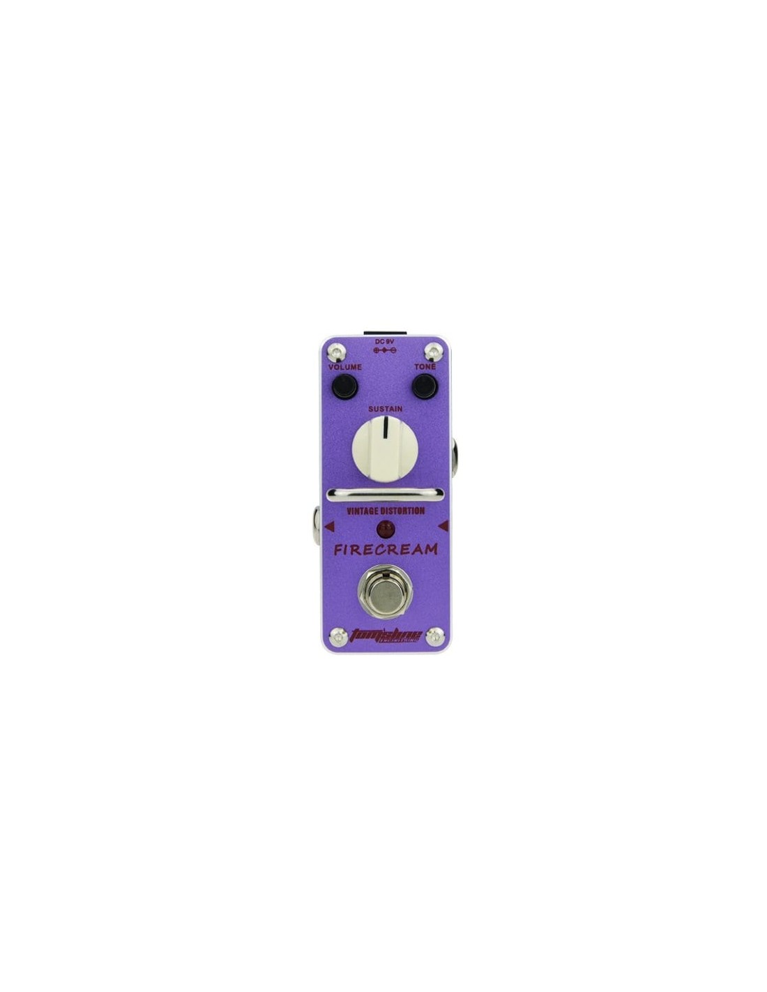 Componi un'ampia gamma di ricchi e cremosi toni fuzz per stratificare il tuo segnale di chitarra con il fuzz stomp Firecream del produttore di effetti per chitarra Tomsline. I vasi Volume, Tone e Sustain dedicati ti consentono di scolpire il tono fuzz esatto per soddisfare le tue esigenze. A causa delle sue dimensioni, il Firecream non può ospitare una batteria da 9V; è necessario un adattatore DC 9V compatibile per utilizzarlo. La Firecream presenta anche il design brevettato della barra di arresto di Tomsline per impedire al piede di rovinare le impostazioni del pedale quando lo calpesti.