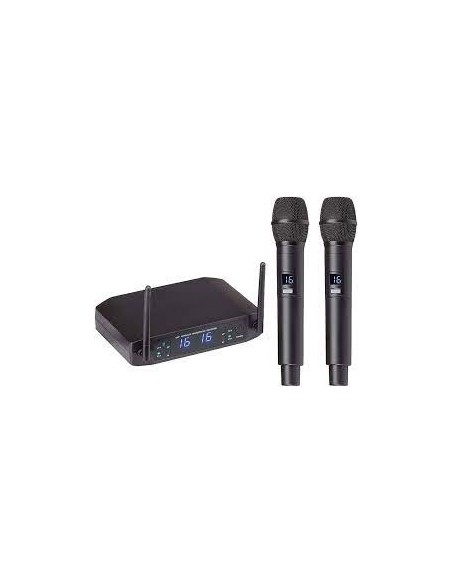 SISTEMA A RADIOMICROFONO UHF CON 16+16 CH E DUE MICROFONI PALMARI