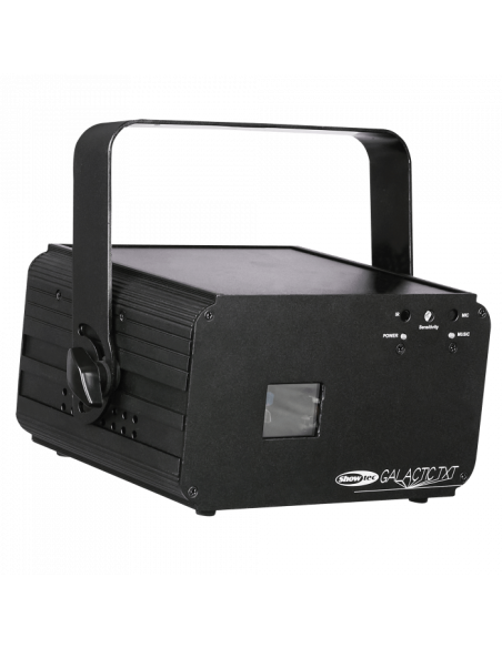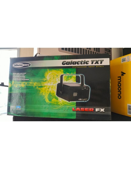 Lo Showtec Galactic TXT è un laser RGB text da 300 mW per la proiezione di testi animati, immagini e simboli personalizzati e preimpostati, adatto per location indoor. I suoi 128 animations & symbols preimpostati includono un orologio, funzione conto alla rovescia e data con zoom, movimenti, onda, disegni, rotazione ed effetti colore. Il Galactic TXT è controllabile tramite DMX, Master/Slave e Telecomando IR in modalità Manual, Auto e Sound