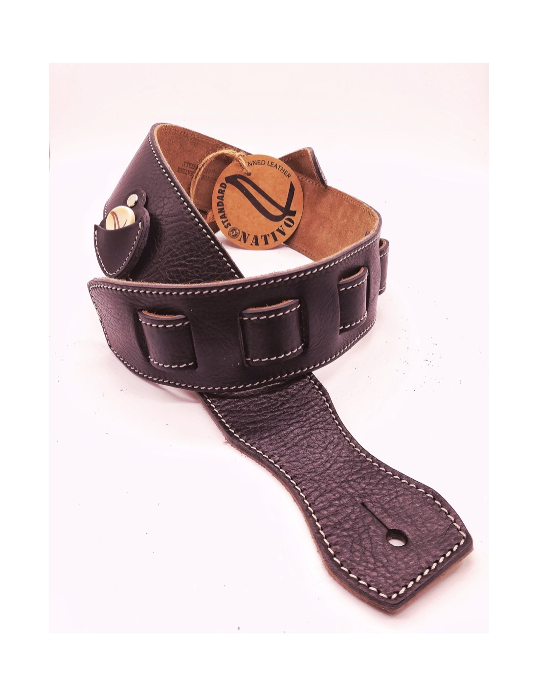 La Tracolla Artigianale per Chitarra e Basso Standard Wambooka è 100% made in Italy. La Tracolla per chitarra e basso è realizzata a mano con vera pelle volonata conciata al vegetale in Toscana. Resistenti cuciture in contrasto. Porta plettro in pelle cucito a mano. Le Tracolle per chitarra e basso standard Wambooka sono realizzate in pelle volonata per garantire un feeling perfetto con lo strumento. Prima ancora di toccarle, sentirete il profumo della vera pelle italiana. Trattata con tannini vegetali, la tracolla subisce un processo naturale e atossico che consentirà alla pelle di invecchiare senza danneggiarsi. Il modello Custom ha i bordi rifiniti a mano permettendo alle tracolle di non sfilacciarsi in futuro.
