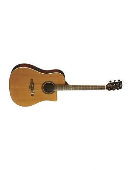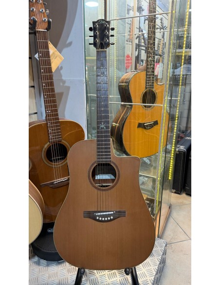 Si presenta in colore Natural con finitura lucida, con forma Dreadnought a spalla mancante, caratteristica che permette al chitarrista di raggiungere agevolmente i tasti più acuti. La combinazione di Cedro massello sul top e Ovangkol su fasce e fondo, frutto di una ricerca accurata, regala a questo strumento uno spettro timbrico molto ampio e sempre ben equilibrato su ogni singola corda. Caratteristica decisamente importante è la presenza di un sistema di amplificazione molto performante.